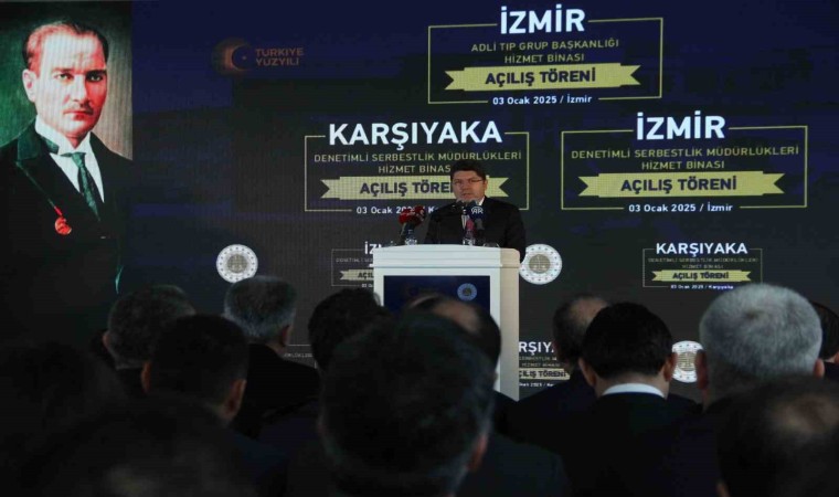 “Bugün açılışını gerçekleştirdiğimiz 14 bin 703 metrekare kapalı kullanım alanına sahip İzmir Denetimli Serbestlik Müdürlüğümüz ve 3 bin 200 metrekare kapalı kullanım alanına sahip Karşıyaka Denetimli Serbestlik Müdürlüğümüz; 224 kişilik konferans salonu ve toplantı salonlarıyla 13 adet infaz bürosu, 44 adet bireysel görüşme odası, 10 adet grup çalışma odasıyla İzmir ili sınırlarında yer alan 17 ilçemize hizmet verecek. Bugün aynı alanda İzmir ve Karşıyaka Denetimli Serbestlik Müdürlüğü binalarımızın açılışıyla birlikte İzmir Adli Tıp Kurumu Grup Başkanlığı Binası’nın da açılışını gerçekleştiriyoruz. Adli tıp bilimi, yargının gerçeği arama yolculuğuna ışık tutan bir bilim dalıdır. Herkes adli tıbbın adalet terazisinde eşit olarak yer alır. Çünkü adli tıp tarafsızdır. Onun görevi, yalnızca gerçeği bulmak ve adaletin terazisini dengelemektir. Yalnız ceza hukuku alanında değil, özel hukuk uyuşmazlıklarında da Adli Tıp Kurumunun yapacağı analiz ve tespitlerin önemi oldukça büyüktür. “