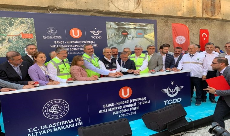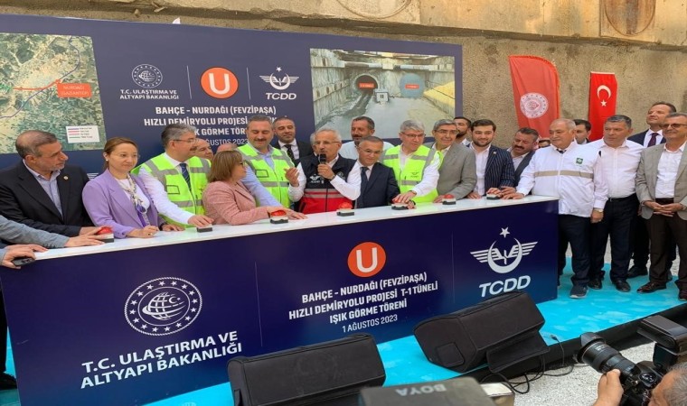 Bahçe - Nurdağı demiryolu projesi hakkında açıklamalarda bulunan Bakan Uraloğlu, “Şimdi de önemli yatırımlarımdan birisi olan Mersin-Adana-Osmaniye-Gaziantep projemizin önemli bir etabını oluşturan 17 kilometre uzunluğundaki Bahçe-Nurdağı Hızlı Tren Projemizin Işık Görme Töreni’nde sizlerle birlikteyiz. Projemiz Türkiye’nin en uzun demiryolu tüneli olması özelliğine sahiptir. Bahçe - Nurdağı Hızlı Tren projemiz ile; Bahçe- Nurdağı İstasyonları arası 32.5 kilometreden 17 kilometreye düşecek. 60 km olan işletme hızı 160 km’ye çıkacak. Yük trenleri seyir süreleri 80 dakikadan 15 dakikaya, Yolcu trenleri seyir süreleri 60 dakikadan 10 dakikaya düşecek. Projemizde yer alan çift tüplü tünelimizin birincisinin, açma işlemini 2020 yılı şubat ayında tamamlamıştık. 2021 yılı Şubat ayında delme işlemine başladığımız T1 Tüneli’nde de bugün ışığı görüyoruz” ifadelerini kullandı.
