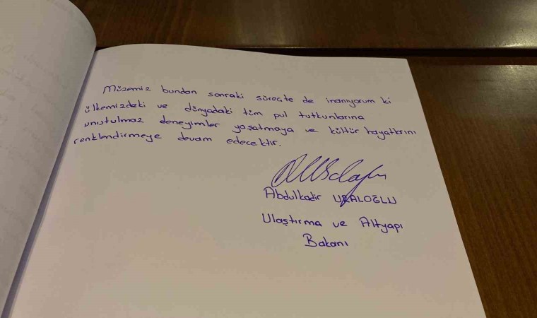 Ulaştırma ve Altyapı Bakanı Abdulkadir Uraloğlu, PTT Pul Müzesi Hatıra Defterine ise şunları yazdı: