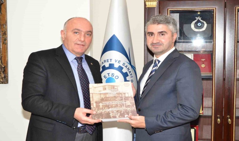 Ziyarette Başkan Özakalın Bakan Yardımcısı Tarıkdaroğlu’na ETSO Tarihi kitabı ve Oltutaşı tespih hediye etti.
