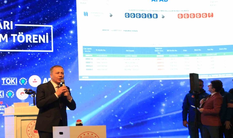 Kura çekim töreninde konuşan Bakan Yerlikaya, bugün şehirlerin azizi, aziz olanların şehri Elazığ’da bulunmanın mutluluğunu yaşadığını söyledi. Bakan Yerlikaya, "Medeniyetin izlerini tarihle iç içe geçmiş duvarlarında saklayan, üzüm bahçeleriyle, Harput Kalesiyle, ovalarıyla, dağların arasında gizlenmiş saklı cennet bahçeleriyle bir başkadır Elazığ, bir başkadır bu şehir. Elazığ, depremle sınanan, bu acıyı yüreğinde taşıyan şehirlerimizin başında geliyor. Elazığ deprem felaketine tarihin belli dönemlerinde maruz kalmış, bu doğal felaketin yıkıcı etkilerinden zarar gördü. Bundan 4 yıl önce, 24 Ocak 2020 tarihinde Elazığ’da meydana gelen 6.8 büyüklüğündeki depremde yine canlarımızı yitirmiş, sevdiklerimizi kaybetmiştik. O zor ve çetin günlerde milletimizin yüreği Elazığ için attı. Ülkemizin dört bir yanından insanlar Elazığ’a akın etti. İlk andan itibaren bir can daha kurtarabilmenin, Enkaz altında bir kişiye daha nefes olabilmenin mücadelesi verildi. Hamdolsun, Elazığ’da depremin yaralarını söz verdiğimiz gibi sardık. Evet binalarımız yıkıldı lakin umudumuz yıkılmadı’’ dedi.