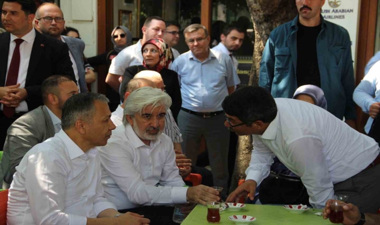 Şehir Buluşmaları programı dolayısıyla Manisa’ya gelen İçişleri Bakanı Ali Yerlikaya Manisa Valisi Yaşar Karadeniz’i ziyaret ettikten sonra öğle namazının ardından Hatuniye Camiinde aşure dağıttı ardından da Kurşunluhan’da esnaf ziyareti yaparak vatandaşlarla sohbet etti.