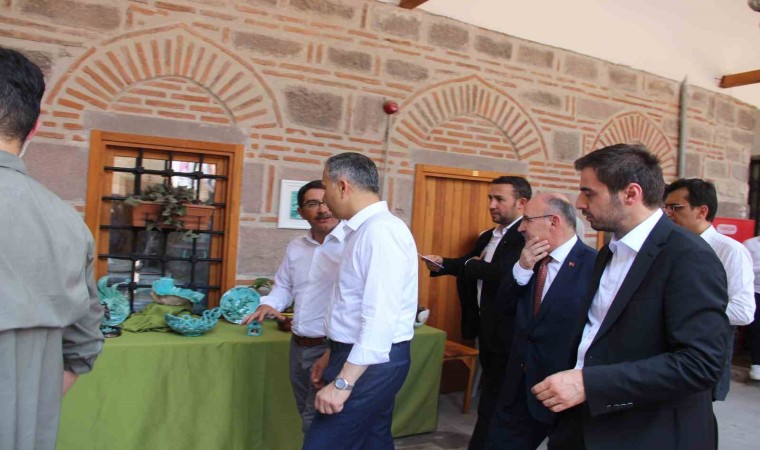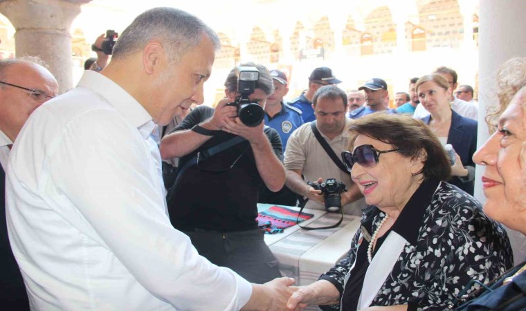 Aşure dağıtımının ardından tarihi Kurşunluhan’da Şehzadeler Mehter Takımı eşliğinde karşılanan Bakan Yerlikaya Şehzadeler Belediyesi ve Şehzadeler Halk Eğitim Merkezi tarafından ortak düzenlenen kurs atölyelerini ziyaret etti. Türk Kadınlar Konseyi Türkiye geneli Şubelerden Sorumlu Başkanı ve Manisa Tarihi Bezi Kooperatifi (MABEZ) Başkanı Mübeccel Kafkaslı tarafından ziyarette Bakan Yerlikaya’ya 600 yıllık geçmişi olan ve terletmeyen özelliğiyle çok tercih edilen Manisa Bezinden yapılan ürünlerden hediye edildi.