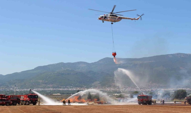 TATBİKATTA, TATBİKAT GEREĞİ ÇIKARILAN YANGINA YER EKİPLERİ VE HAVA ARAÇLARI MÜDAHALEDE BULUNDU.