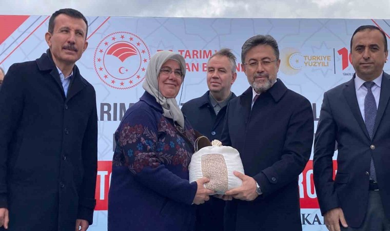 Bakan Yumaklı, konuşmasının ardından çiftçilere tohum dağıttı.