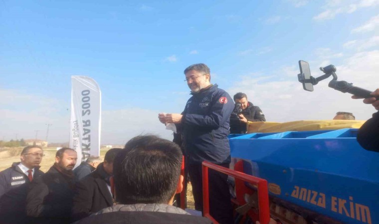 Toprağı korumayı her zaman milli bir vazife olarak gördüklerini söyleyen Bakan Yumaklı, "Bugün burada doğrudan tohum ekme işlemini de gerçekleştirdik. Özellikle kurak alanlarda 500 mm’nin altına yağış alan alanlarda doğrudan anız üzerine ekim yapmanın diğer usullere göre hem verim açısından hem kalite açısından hem de yapılan masraflar açısından çok daha avantajlı olduğunu tespit etti araştırma ve geliştirme merkezimiz. Şu anda da tarımsal araştırma ve geliştirme merkezimizin enstitülerimizin bir tanesinin içerisindeyiz. Bu yöntemle daha az yakıt tüketmek mümkün aynı zamanda toprakla ilgili işlemin en az olmasından ötürü erozyon ve diğer etkenlerden daha az etkilenmesi söz konusu. Ayrıca tarımsal araştırma ve geliştirme merkezimizin geliştirmiş olduğu Bayraktar isimli tohumu da biraz önce tarlaya ekimini gerçekleştirdik" açıklamasında bulundu.