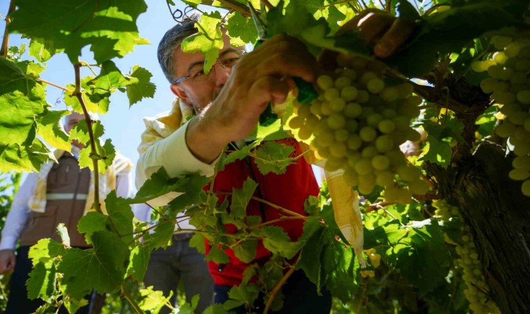 Tarım ve Orman Bakanı İbrahim Yumaklı Manisa’nın Saruhanlı ilçesinde üzüm hasadına katıldı. İlk olarak çiftçilerle sohbet eden Bakan Yumaklı eline bağ makası alarak üzüm hasat etti. Hasat töreni ardından konuşan Bakan Yumaklı, rekoltenin geçtiğimiz yıla göre yüksek olduğunu belirterek, “Bugün Manisa’da Manisa’nın alameti farikası Sultani çekirdeksiz üzümünün organik olarak üretilen bir bağında sembolik olarak da olsa bir açılışı yapmış olduk. Ama aslında mevsimlerin öne gelmesiyle beraber bizim 15 gün sonra başlamasını beklediğimiz hasatta herhalde bugünlerde başlamış olacak inşallah. Manisa izinde birinci malumunuz ama ondan çok daha önemli özellikle bu Sultaniye üzümünün ihracat potansiyeli. Hakikaten çok ciddi bir şekilde talep gören bir ürün. Geçtiğimiz yıl 500 milyon dolar civarında bir ihracat rakamı oldu. Rekolteyle alakalı, bu yılın geçtiğimiz yıldan çok farklı olmayacağını değerlendiriyoruz açıkçası. Biraz daha iyi ama iklim şartları beklediğimizin üzerinde bir rekolte gelmesine engel olmuş oldu. Ama geçtiğimiz yıldan kesinlikle kötü değil. Ben şimdiden burada üretim yapan bütün üreticilerimize hayırlı, uğurlu, bereketli olmasını diliyorum. Hem buradaki üreticilerimize hem Manisa’daki bütün üreticilerimize Türkiye’deki bütün üreticilerimize geçmiş ve bundan sonra olacak hasat dönemindeki ürünler için bolluk, bereket ve bol kazanç diliyorum” ifadelerini kullandı.