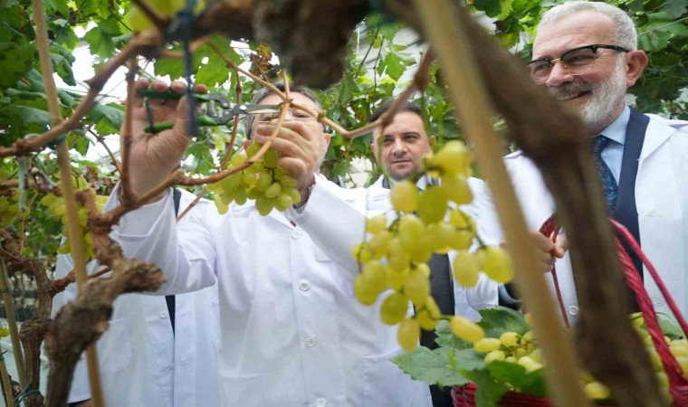 Tarım ve Orman Bakanlığı Manisa Bağcılık Araştırma Enstitüsünde araştırma sürecinde olan ve yılda iki kez ürün verebilen seradaki üzüm hasadına katılan Tarım ve Orman Bakanı İbrahim Yumaklı, araştırmada sona gelindiği müjdesini verdi. Bakan Yumaklı, “Manisa gibi üzümün başkentinde aynı şekilde sera ortamında üretilebilecek ve yılda iki kez hasat yapılabilecek ürünün araştırmasının sona erdiğini de tamamlandığını da ve bu ürünlerin artık üretilmesiyle alakalı üreticilerin uygulamalarının başlayacağını söylemek isterim” dedi.