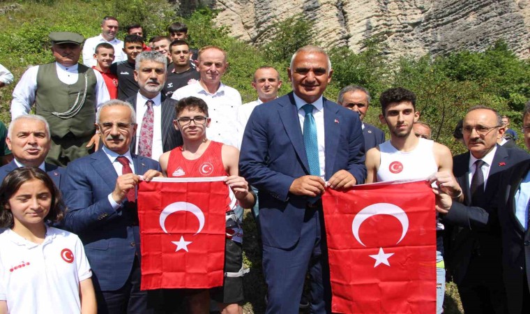 Trabzon Havalimanı’nın yeni dış hatlar gelen yolcu terminali ve CIP binasının açılış töreni için kente gelen Ulaştırma ve Altyapı Bakanı Abdulkadir Uraloğlu ile Kültür ve Turizm Bakanı Mehmet Nuri Ersoy, Düzköy ve Akçaabat ilçelerindeki turizm bölgelerinde incelemelerde bulundu. İlk olarak Düzköy ilçesinde dünyanın en uzun 2. mağarası olarak bilinen Çal Mağarası’nda incelemelerde bulunan Bakanlar daha sonra Şahinkaya Tırmanış parkurunu gezmek için bölgeye giderken Çal mahallesindeki vatandaşlar tarafından durduruldu. Şahinkaya’nın eteklerinde vatandaşlar ile kemençe eşliğinde horon oynayan Bakanlar ardından tırmanış parkurundaki sporcular ile bir araya geldi. Şahinkaya Tırmanış parkuru hakkında yetkililerden bilgiler alan Bakanlar tırmanış gerçekleştiren sporcuların açtığı Türk bayrağı ile hatıra fotoğrafı çektirdi.