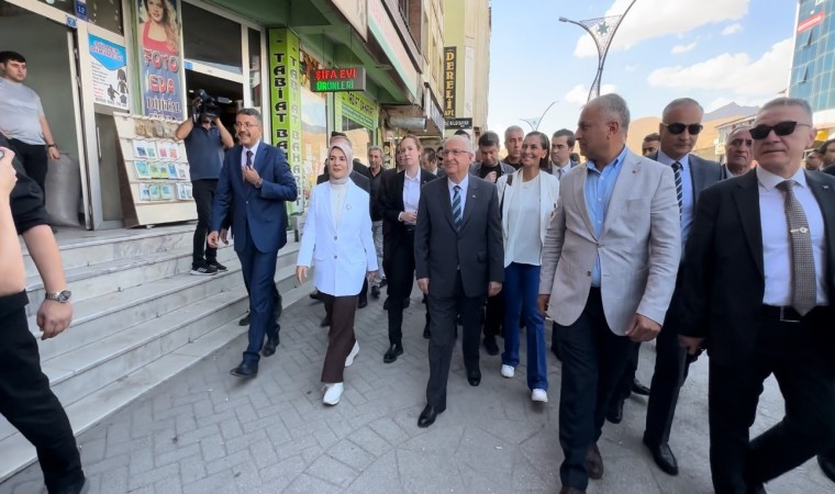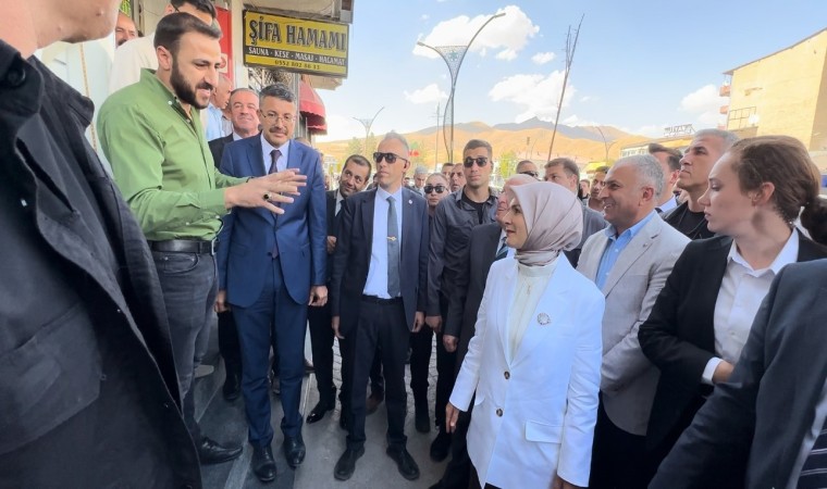 Milli Savunma Bakanı Yaşar Güler ile Aile ve Sosyal Politikalar Bakanı Mahinur Özdemir Göktaş, Yüksekova ilçe merkezinde esnafı ziyaret etti.