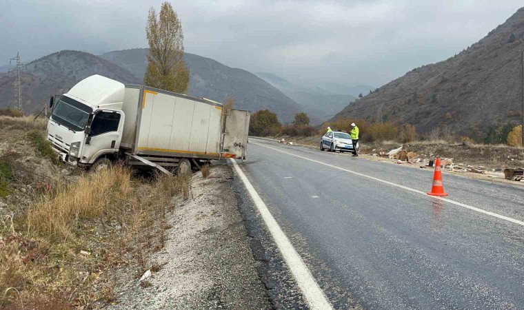 Kaza, Tosya ilçesi D100 karayolu Ekincik köyü mevkiinde meydana geldi. Edinilen bilgiye göre, Ö.Ş. yönetimindeki 06 DV 5662 plakalı, Kültür ve Turizm Bakanlığına ait olduğu öğrenilen kamyon, sürücüsünün direksiyon hakimiyetini kaybetmesi neticesinde yoldan çıktı. Toprak yığınına çarparak durabilen kamyonun sürücüsü yaralandı. Yaralanan sürücü, olay yerine çağrılan sağlık ekiplerince Tosya Devlet Hastanesine kaldırıldı.