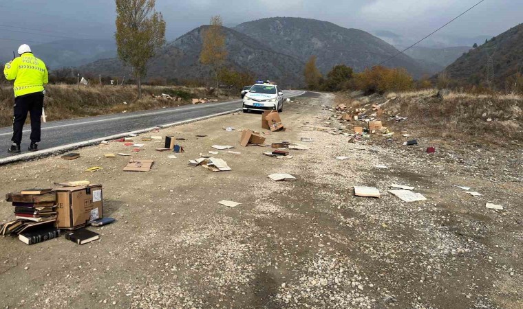 Kastamonu’dan Tosya ilçesinde Kültür ve Turizm Bakanlığına ait olduğu öğrenilen kamyonun kaza yapması neticesinde, kasasındaki kitaplar etrafa saçıldı. Kazada kamyon sürücüsü yaralandı.