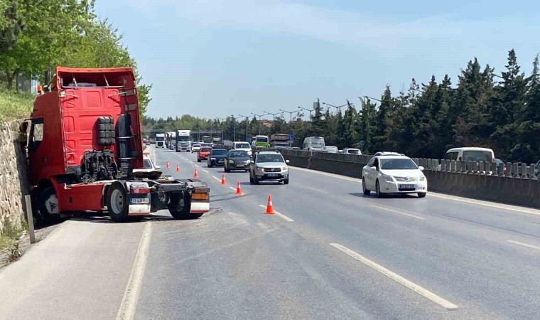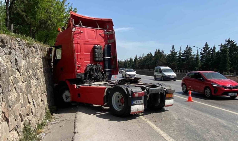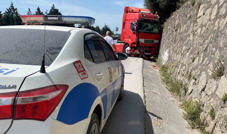 Kocaeli’nin İzmit ilçesi D100 karayolunda meydana gelen kazada, bakıma giden tır kontrolden çıkarak istinat duvarına çarptı. Sürücü kazayı hafif yaralı olarak atlattı.