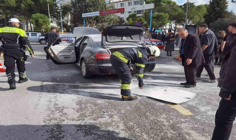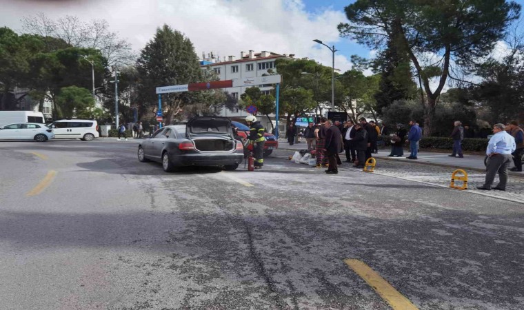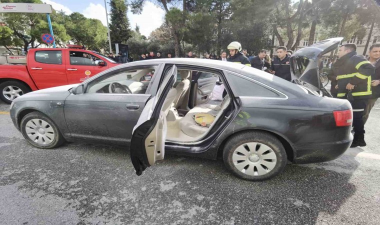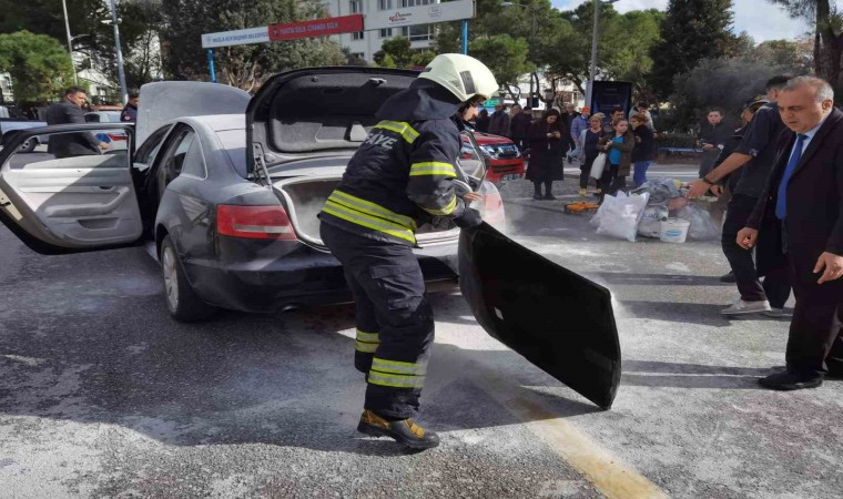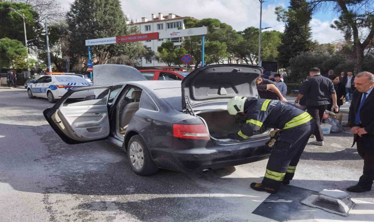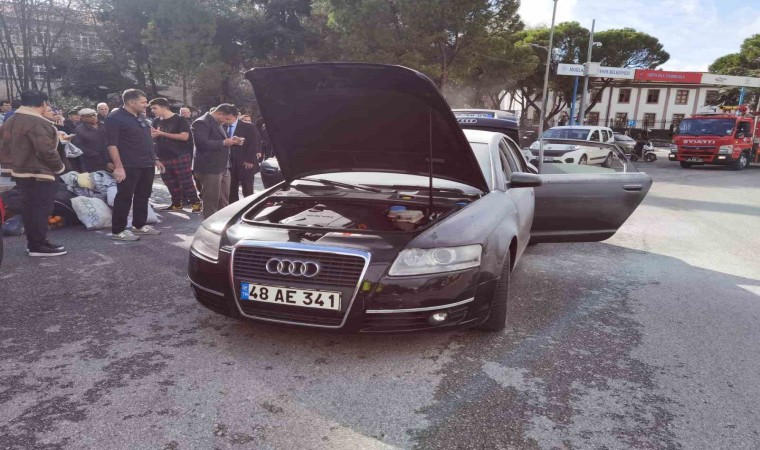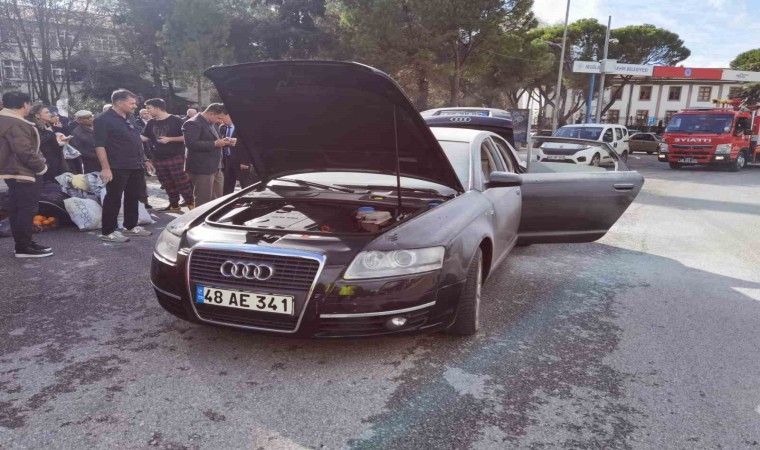 Muğla’nın Menteşe ilçesi Cumhuriyet meydanında seyir halindeki 48 AE 341 plakalı otomobilden henüz bilinmeyen bir nedenle dumanlar yükselmeye başladı. Dumanları fark eden otomobil sürücüsü durumu 112 Acil Çağrı Merkezi’ne bildirmesi üzerine bölgeye polis ve Muğla Büyükşehir Belediyesine ait itfaiye ekipleri sevk edildi. Çevredeki vatandaşların ve valilik personelinin yardımı ile araçta çıkan yangında maddi hasar meydana gelirken yanan aracın yarım saat önce bakımdan alındığı öğrenildi. Yangının bagaj kısmındaki elektrik aksamından çıktığı belirlenirken yangınla ilgili soruşturma başlatıldı.