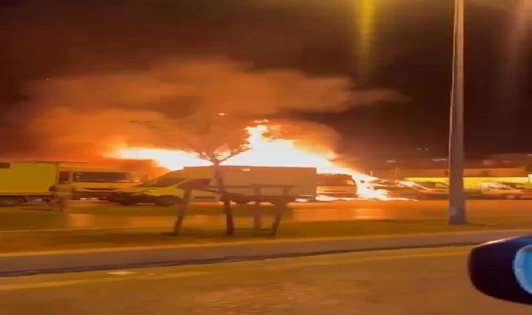 Yangın, 22.30 sıralarında henüz belirlenemeyen bir nedenle Fikret Yüzaltı Caddesi'nde aralarında yarış atlarının taşındığı kamyonetlerinde bulunduğu otoparkta çıktı. Park halindeki bazı kamyonetlerin kasasında bulunan saman balyalarının tutuşması nedeniyle yangın kısa sürede büyüdü. İhbar üzerine olay yerine çok sayıda itfaiye ekibi sevk edildi. Yaklaşık bir saat süren çalışmaların ardından söndürülen yangında aralarında yarış atlarının da taşındığı kamyonetlerin bulunduğu 5 araç yandı. Kamyonetlerde bulunan samanlar, yeniden bir yangın çıkmaması için olay gelen iş makinası tarafından dağıtıldı.