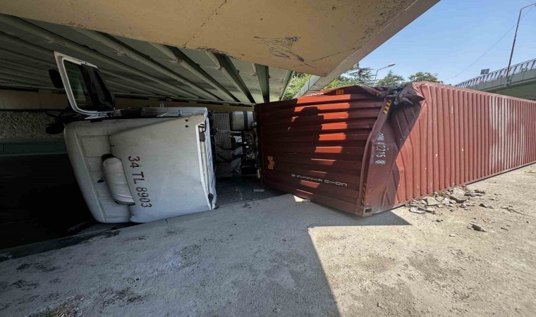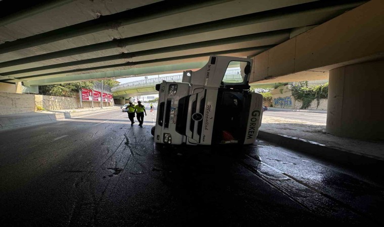 Bakırköy’de yaklaşık 5 ay önce 4 kişinin hayatını kaybettiği noktada yeni bir kaza yaşandı. Üst geçide çarpan tır devrilirken, o sırada yolun boş olması büyük bir faciayı önledi.