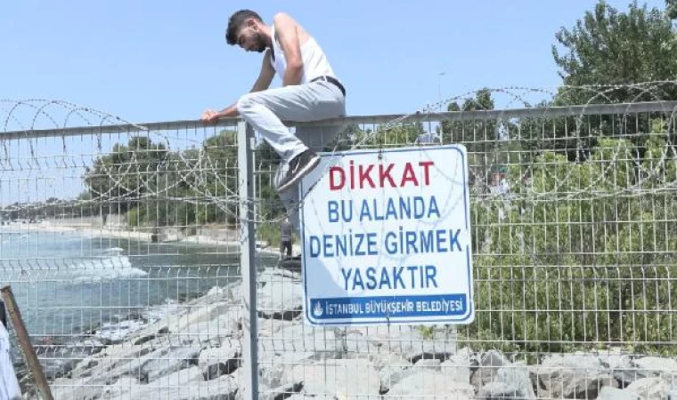Rojda ALTINTAŞ- Serkan KÖYMEN / İSTANBUL, (DHA)- BAKIRKÖY'de İl Yüzme Suyu Komisyonu tarafından yapılan 'Su ölçüm değerlerinin uygun olmaması' nedeniyle denize girmenin yasak olduğu Güneş Plajı'nda vatandaşlar yasak tabelasına rağmen tellerin üzerinden atlayarak denize girdi.