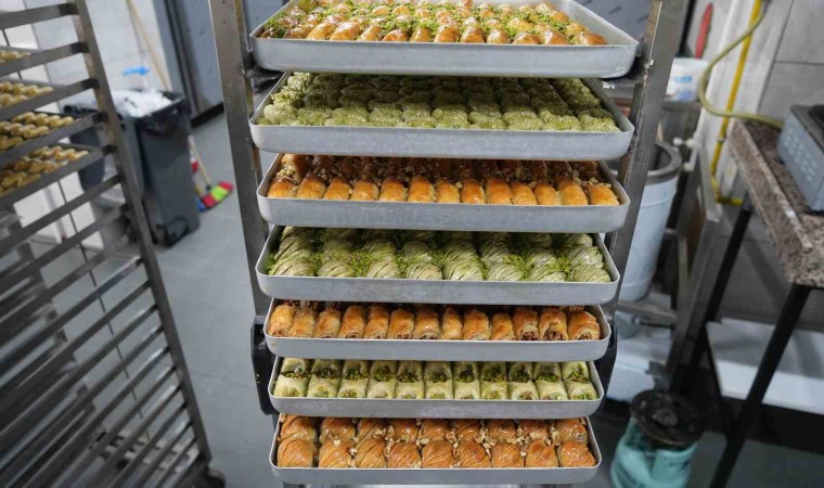Ramazan Bayramı’na sayılı günler kala birçok sektörde yaşanan bayram telaşı baklavacılarda da sürüyor. Baklavacılar, müşterilerinin talebini karşılamak için imalathanelerde yoğun mesai harcıyor. Bayram sofralarının vazgeçilmezi baklava, ustalık gerektiren bir sürecin ardından satışa sunuluyor. Zamandan tasarruf sağlamak için makinelerle seri üretimin yapıldığı yufkalar, öğütülmüş Antep fıstığı ve tereyağı ile tepside buluşturuluyor, yüksek dereceli fırında pişirilen baklavanın üzerine şerbeti veriliyor. Mağaza satışlarının yanı sıra internet ortamından gelen siparişlere de yetişmek için imalathanede vardiyalı çalışma sistemi uygulanıyor. Bazı müşteriler ise evinde baklava yapmak için hazır yufka almayı tercih ediyor.