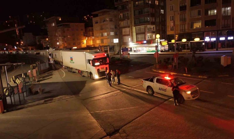 Azerbaycan’ın Başkenti Bakü’den Suriye’ye gitmek üzere yola çıkan, 200 ton gıda malzemesini taşıyan 10 tır Sarp Sınır Kapısı’ndan Türkiye’ye giriş yaptı.