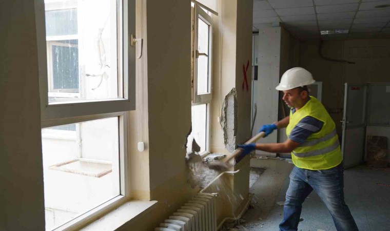 Kahramanmaraş merkezli depremin ardından kolonlarında yorgunluk tespit edilince tahliye edilen Balcalı Hastanesi’nde güçlendirme çalışmaları başladı.