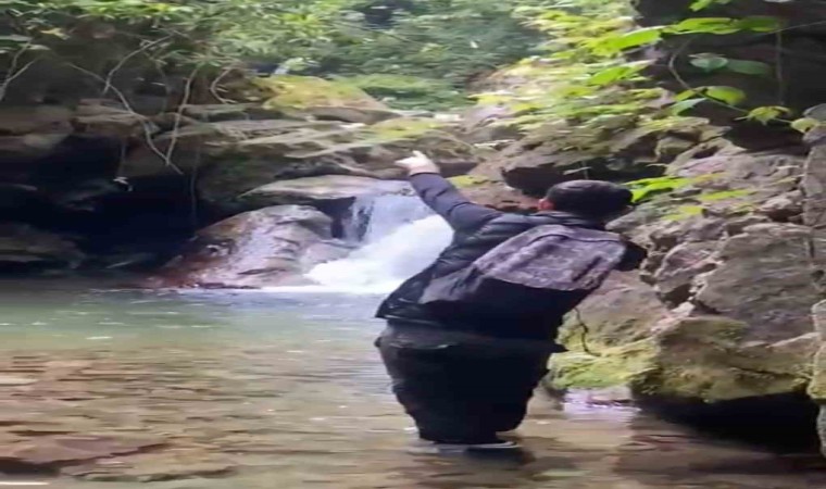 Rize’de derede balık tutmaya çalışan vatandaş ayı ile karşılaşınca neye uğradığını şaşırdı.