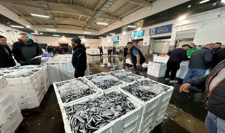 Samsun’da balık halinde gece 03.00’te yapılan mezatta kasalar dolusu hamsi kapış kapış satıldı.