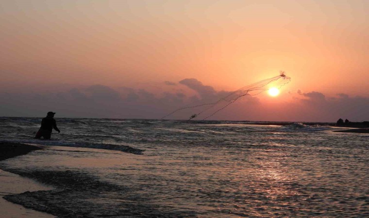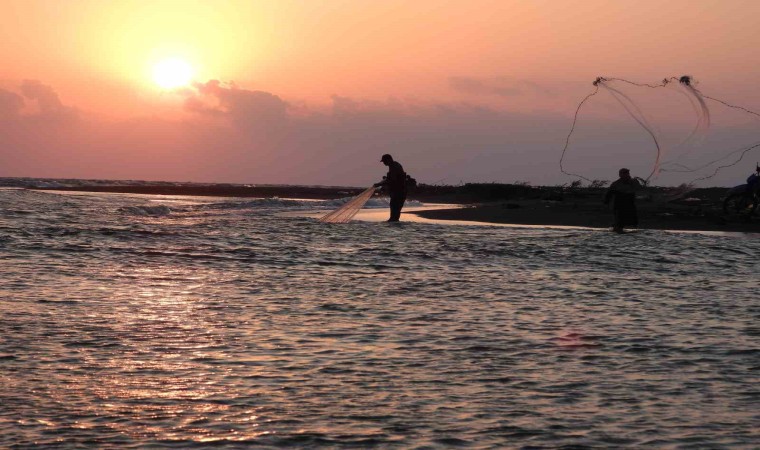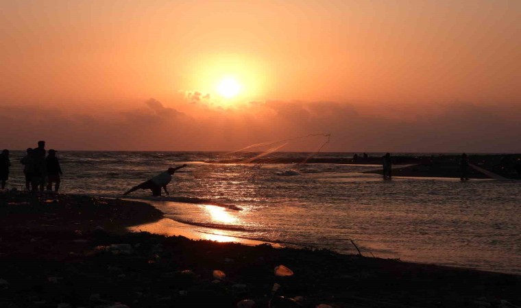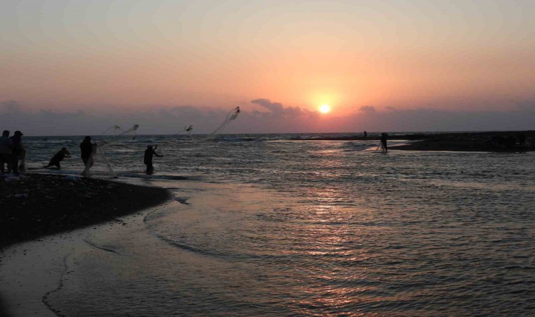 Asi Nehri’nin Hatay üzerinden Akdeniz’e döküldüğü nokta, amatör balıkçıların uğrak yeri oldu. Balıkçılar, Akdeniz’de gün batımı eşliğinde nasiplerini aradı.