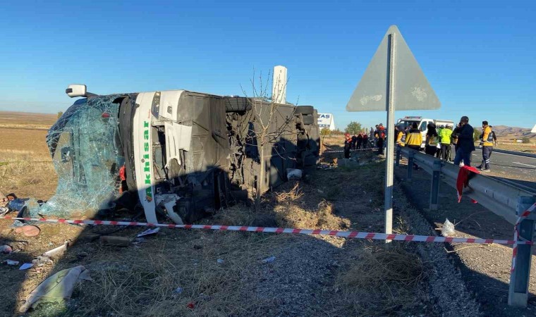BALIKESİR BANDIRMA’DAN KAPADOKYA’YA GEZİ İÇİN ÇIKAN OTOBÜS AKSARAY-ANKARA KARAYOLUNUN YAKLAŞIK 40. KM’SİNDE YOLDAN ÇIKARAK ŞARAMPOLE DEVRİLDİ. İLK BELİRLEMELERE GÖRE 6 ÖLÜ VE ÇOK SAYIDA YARALI OLDUĞU ÖĞRENİLDİ.
