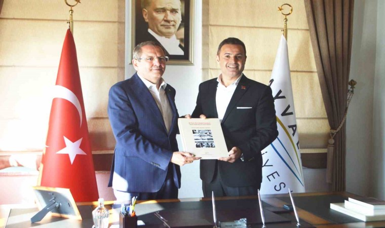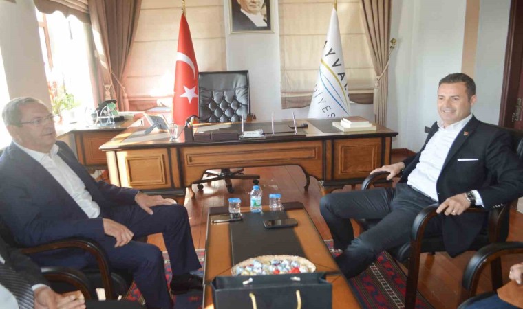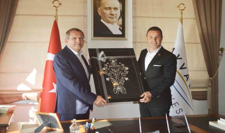 Ayvalık Belediye Başkanı Mesut Ergin’i makamında ziyaret ederek, yeniden belediye başkanlığı görevine seçildiği için kutlayan Balıkesir Büyükşehir Belediye Başkanı Ahmet Akın, belediye meclis üyeleriyle de bir süre sohbet etti.