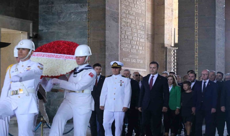 Balıkesir Büyükşehir Belediye Başkanı Ahmet Akın, beraberindeki belediye başkanları, meclis üyeleri ve milletvekilleriyle Anıtkabir’i ziyaret etti. Beraberindeki heyetle Aslanlı Yol’dan yürüyerek Gazi Mustafa Kemal Atatürk’ün mozolesine gelen Akın, çelenk bırakarak saygı duruşunda bulundu. Ardından hatıra fotoğrafı çektiren ve Misak-ı Milli Kulesi’ne geçen Akın ve beraberindeki heyet, Anıtkabir Özel Defteri’ni imzaladı.