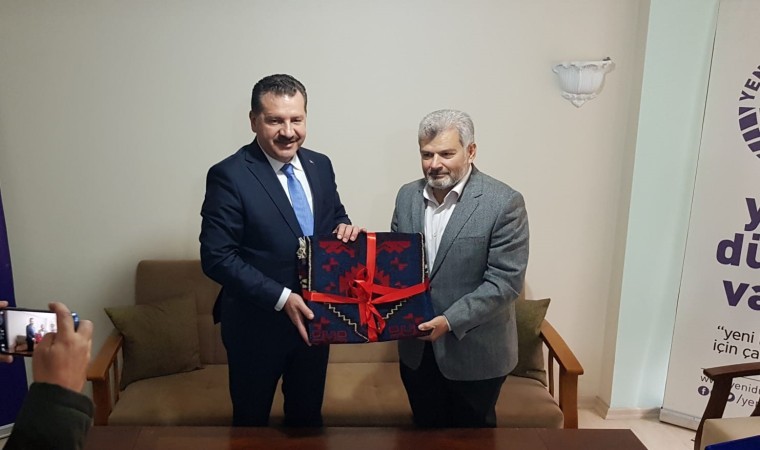 Yeni Dünya Vakfı Edremit Temsilcisi Tahsin İzci, ‘Yüreğimiz yanıyor’ diyerek mağdur ve mazlumun sesi olmak için Başkan Yücel Yılmaz’a üzerinde Filistin ve Türk bayrağı olan şal hediye etti.