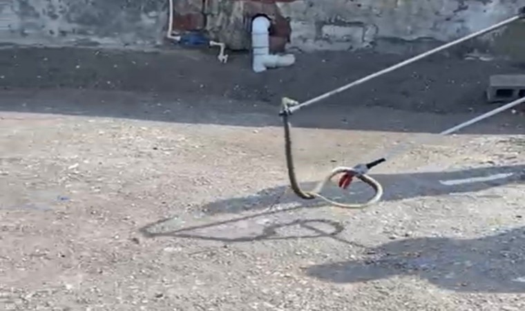 Balıkesir’in Manyas ilçesinde eve giren bir yılan itfaiyeciler tarafından çıkarıldı.