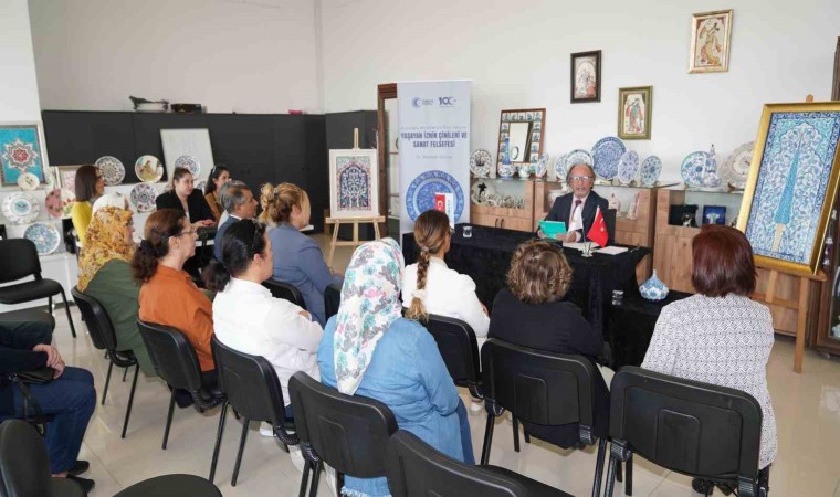 “Yaşayan İznik Çinileri ve Sanat Felsefesi” temalı söyleşi; 2009 yılında UNESCO tarafından miras taşıyıcı kabul edilmiş ve “Yaşayan İnsan Hazinesi” ilan edilen Dr. Mehmet Gürsoy’un katılımıyla Çamlık BALMEK Atölyelerinde gerçekleştirildi. Çini sanatını bir “Göz Musikisi” olarak tanımlayan Mehmet Gürsoy, ecdadın mirasını günümüze taşımaya çalıştığını vurgulayarak “Bir sanatkârın dünyasında miras taşıyıcı kabul edilmek, buna layık olmak güzel bir hadise. Yarışmalar yıldız sanatçı adaylarının keşfedilmesi için bizlere sunulan imkânlardır.” dedi.