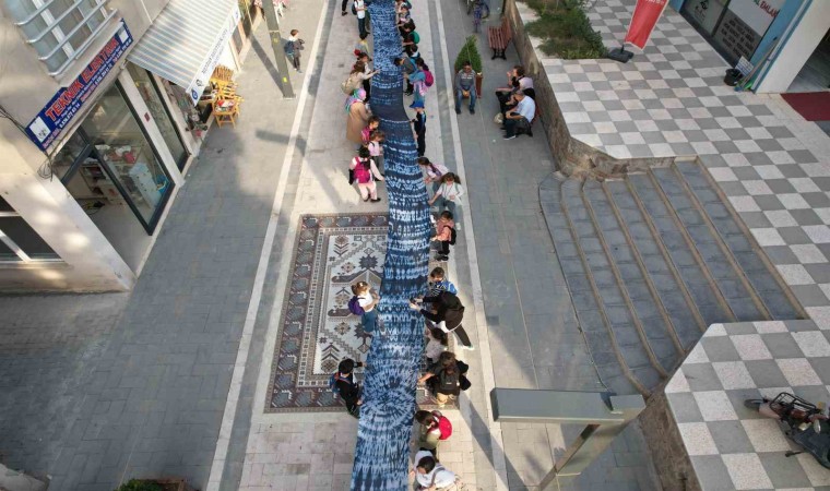 “Sındırgı’nın Renkleri Çivitten İndigoya” söyleşi, Doç. Dr. Mustafa Genç’in katılımıyla Kışla Müze Han’da gerçekleşti. 100 metre kumaşın kök boya tekniği ile boyandığı etkinlikte; odun ateşinde kaynatılan bitkilerden elde edilen boyalarla boyanan kumaşlar, Yağcıbedir Halılarının döşendiği Yağcıbedir Kültür Yolu’nda iplere asıldı ve kurumaya bırakıldı. Etkinliğe; ilçedeki okullardan ve farklı illerden öğrenciler de katıldı. Öğrenci ve vatandaşların merakla takip ettiği programda kumaş boyamanın yanı sıra katılımcılar kendilerine hediye edilen tişörtleri kök boya ile boyayarak deneyim kazandı.