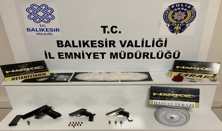 Balıkesir İl Emniyet Müdürlüğü genel güvenliği ve asayişi sağlamak amacıyla Asayiş ve Narkotik Şube Müdürlüğü ekipleri, Altıeylül, Karesi, Ayvalık, Balya, Bandırma, Bigadiç, Burhaniye, Edremit, Erdek, Gömeç, Gönen, Sındırgı ve Susurluk ilçelerinde son 1 haftada yapılan çalışmalarda 291 şüpheli şahsı gözaltına alınırken, adli makamlara sevk edilen 117 şahıs tutuklandı. Yapılan aramalarda; 16 adet ruhsatsız tabanca ve 69 adet fişek, 10 adet ruhsatsız tüfek ve 85 adet kartuş, 3 adet kurusıkı tabanca, 389 adet sentetik ecza hap, 130 gram metamfetamin maddesi, 89 gram esrar maddesi ve 5 gram bonzai maddesi ele geçirildi.