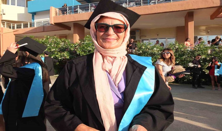 Burhaniye Meslek Yüksekokulu Pazarlama ve Reklamcılık bölümünü bitiren 5 çocuk ve 3 torun sahibi Nezihat Çavuşoğlu, çocukları yaşındaki gençlerle birlikte diploma almanın mutluluğunu yaşadı. Geçtiğimiz yıl örnek davranışları nedeniyle teşekkür belgesi alan Çavuşoğlu, 5 çocuğunun da üniversite mezunu olduğunu söyledi. İstanbul da oturduğunu anlatan Çavuşoğlu, “ İlkokul mezunuydum. Okuma imkanım olmamıştı. Çocuklarımı okuttuktan sonra, ortaokul ve liseyi dışardan bitirdim. Allah, kısmet etti Burhaniye Meslek Yüksekokulu Pazarlama Reklamcılık Bölümüne kaydımı yaptırdım. Okul için Burhaniye’ye taşındım. Şimdi de diplomamı aldım.. Çok mutluyum. Burhaniye’yi de de çok sevdim. Okumanın yaşı yoktur. Herkes okuyabilir” dedi. Burhaniye MYO Müdürü Doç. Dr. Muammer Bezirgan’da Çavuşoğlu’nu tebrik etti.