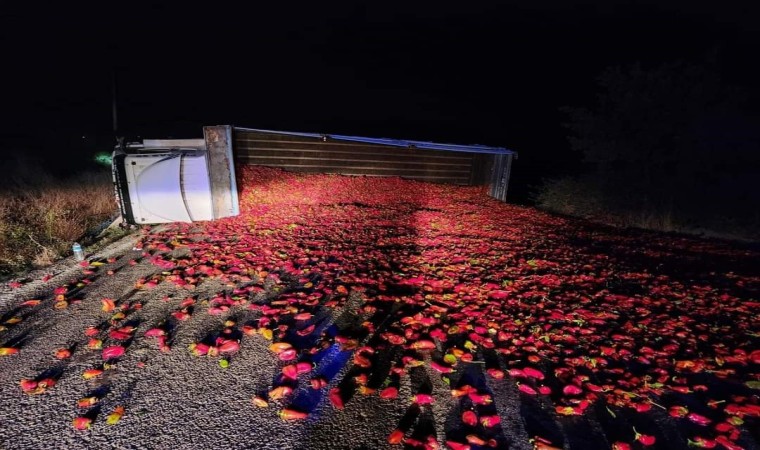 Balıkesir’in Gönen ilçesinde biber yüklü kamyonun devrilmesi sonucu meydana gelen trafik kazasında 2 kişi yaralandı.