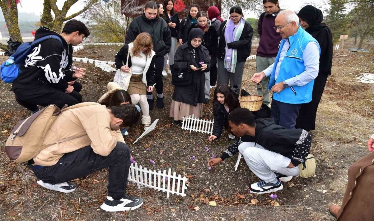 Botanik bahçesi arazisinde ilk kez yetiştirilen safranın hasadına Biyoloji bölümü öğrencileri ile birlikte Rektör yardımcısı Prof. Dr. Fatih Satıl ve Biyoloji Bölümünden Arş. Gör. Tuba Mumcu katıldı. Prof. Dr. Satıl, hasat esnasında öğrencilere hem safran çiçeğini anlattı hem de hasat yapılırken dikkat edilmesi gerekenleri öğrencilere aktardı. Öğrenciler safran bitkisini toplarken bol bol hatıra fotoğrafı çektirdi.