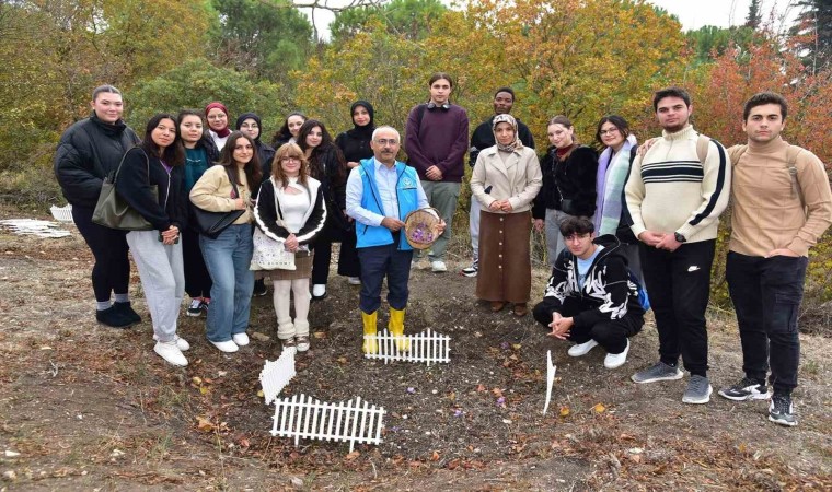 Prof. Dr. Fatih Satıl yaptığı açıklamada; “UNESCO Dünya Miras Listesi’nde yer almakta ülkemizde yoğun olarak Safranbolu ilçesinde yetiştirilen ve “mor altın” olarak adlandırılan safran çiçeği artık üniversitemizde bulunan Botanik bahçesinde de yetiştiriliyor. Safranın önemi giderek artan tarım ürünleri arasında yer aldığını belirten Satıl, Safran ekim ve kasım arasında yaklaşık bir aylık sürede toplanıyor. Çok özel, antik çağlardan beri kullanılan kadim bir bitkidir. Safran soğanlarını bize sağlayan Altınoluk MYO Tıbbi ve Aromatik Bitkiler Programı öğrencimiz ve aynı zamanda soğanlı bitki üreticisi olan İrem Karabulut’a teşekkür ederiz” dedi.