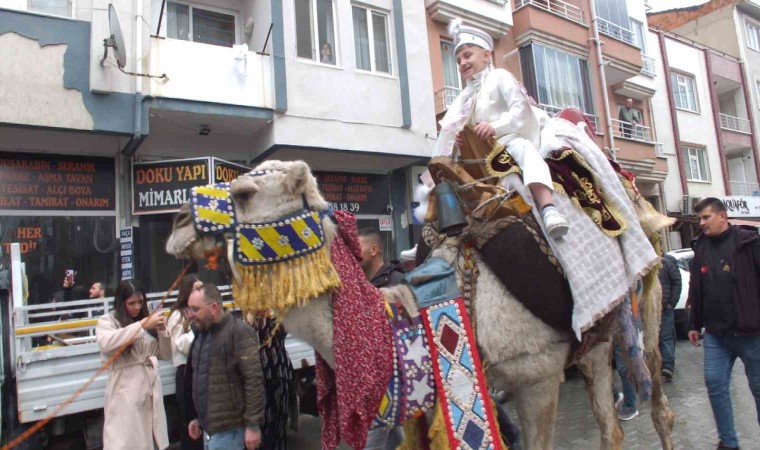 Burhaniye ilçesinde, develi sünnet geleneği devam ederken, Ersan Erdoğan da, sünnet oğlu Caner Erdoğan’ı deve ile gezdirdi. Koca Cami önünde deveye bindirilen Faruk Kızıklı İlkokulu 2.Sınıf öğrencisi Caner Erdoğan’ı tekbirler eşliğinde Mahkeme Mahallesindeki evine getirdi.