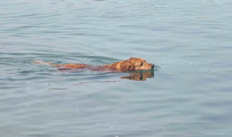 Burhaniye ilçesinde, havaların ısınmasıyla birlikte sahiller insanlarla dolup taşarken, köpekler de serinlemek için denize girmeye başladı. Serap Giray’a ait 8 yaşındaki ’Grim’ adlı köpek de denizde saatlerce yüzerek ilgi odağı oldu.