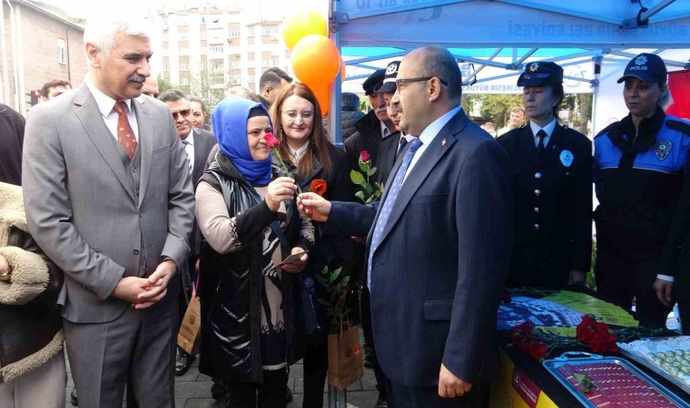 Balıkesir’de kadınların haklarına ve güvenliklerine yönelik toplumsal bilinci artıracak çalışmalar aralıksız devam ediyor. Stantları ziyaret eden Balıkesir Valisi İsmail Ustaoğlu, kadın vatandaşlara karanfil taktim etti.