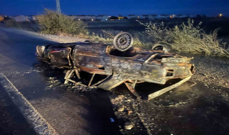 Balıkesir’in Gönen ilçesinde meydana gelen trafik kazası sonrası araç alev alırken, 2 kişi yaralandı.