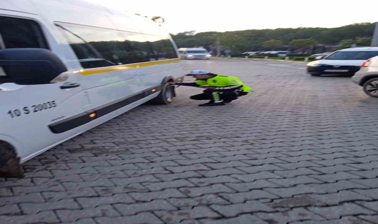Burhaniye İlçe Emniyet Müdürlüğü ekipleri, kış lastiği denetimlerine başladı. Trafik ekipleri ilk denetimi okul servis araçlarında yaptı.