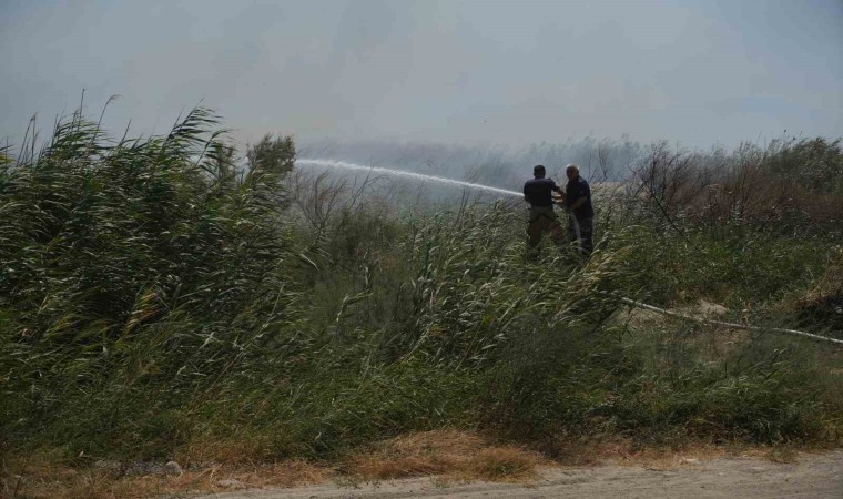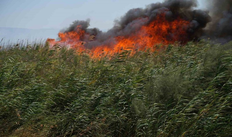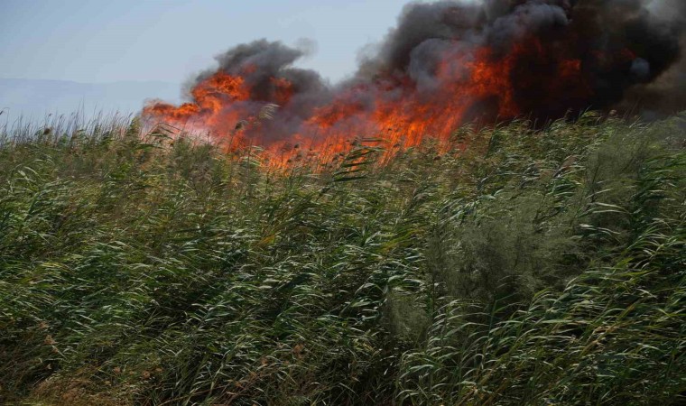 Altınkum Mahallesi Dalyan mevkiinde göçmen kuşların göç güzergahında bulunan denize yakın noktadaki sazlık alanda henüz belirlenemeyen bir nedenle 3 ayrı noktada yangın çıktı.