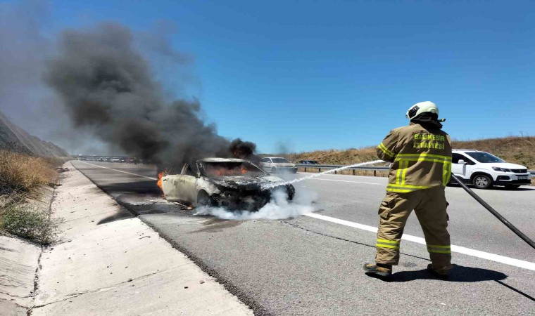 Balıkesirde lüks araç otobanda cayır cayır yandı
