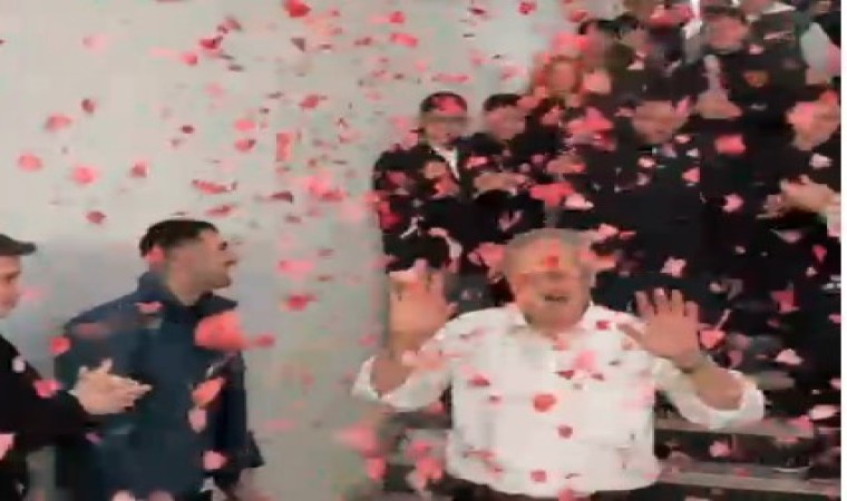 Merdivenlerden inerken çiçek ve konfeti atıldı