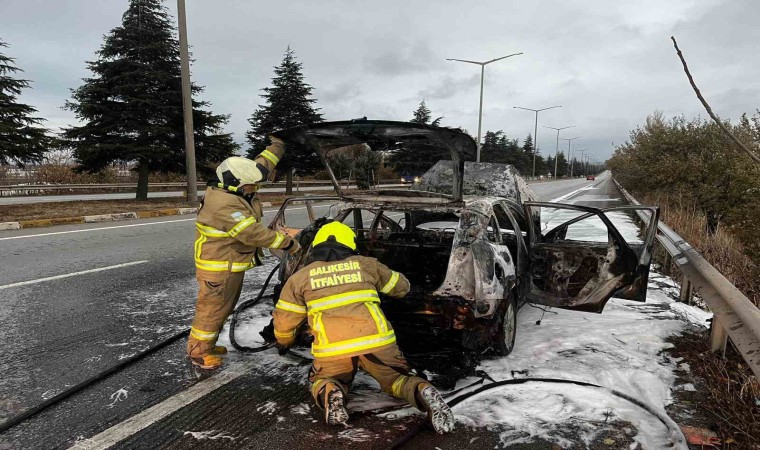 Olay Altıeylül ilçesine bağlı Ayşebacı mahallesinden geçen anayolda meydana geldi. H.S. yönetimindeki 35 BLS 560 plakalı araç seyir halinde iken alev aldı. sürücü H.S. otomobili yol kenarına çekerek araçtan indi. İhbar üzerine İtfaiyenin Karesi Grup Amirliği personeli araç yangınına müdahale ederek, otomobil yangınını söndürdü. Otomobil yangını ile soruşturmanın devam ettiği açıklandı.