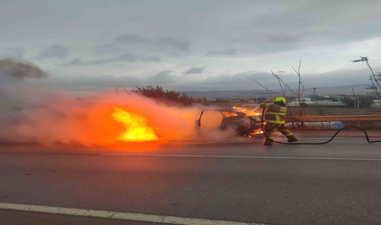 Balıkesir’in Altıeylül ilçesinde meydana gelen olayda seyir halindeki otomobil nedeni belirlemeyen bir sebeple alev aldı. İhbar üzerine olay yerine gelen itfaiye ekipleri otomobil yangını söndürdü.