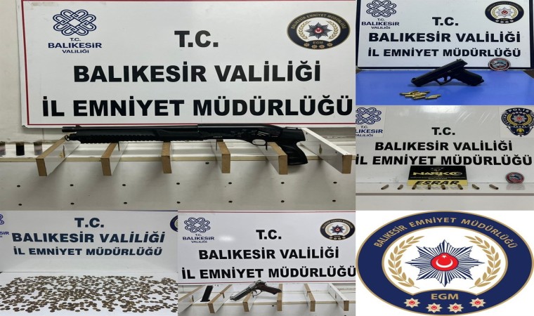Balıkesir’de polis ekipleri tarafından son bir haftada yapılan denetimlerde çok sayıda yasa dışı silah ele geçirildi. Denetimlerde yaklaşık 80 gram metamfetamin ve 20 gram esrar maddesi ele geçirildi.
